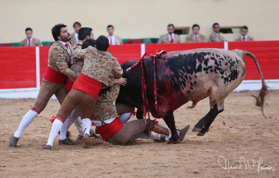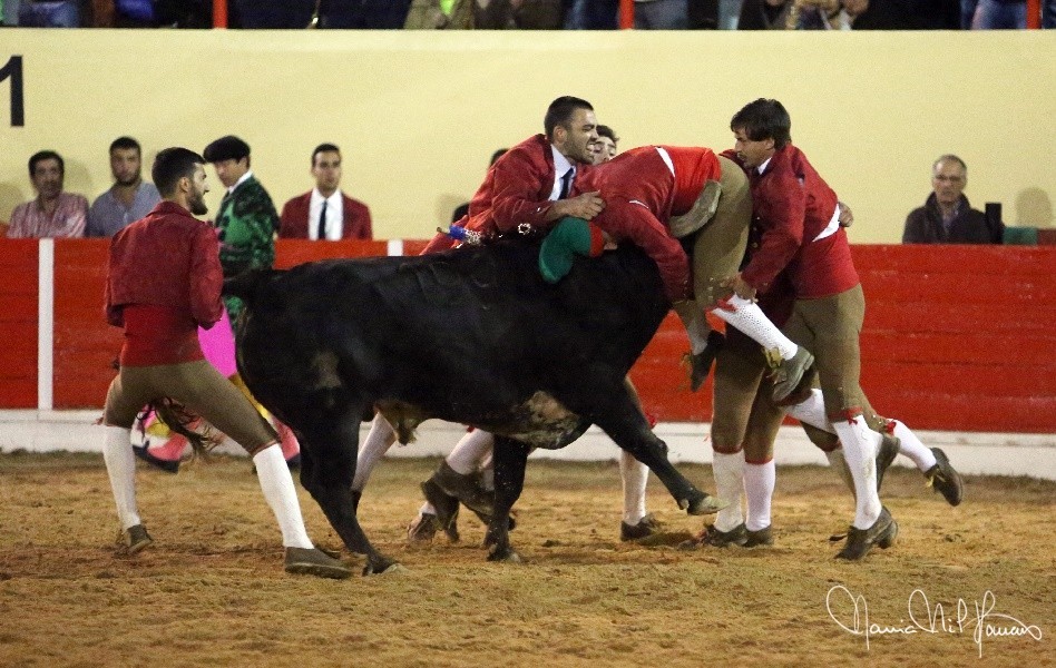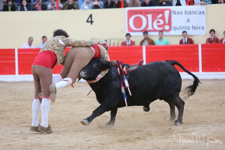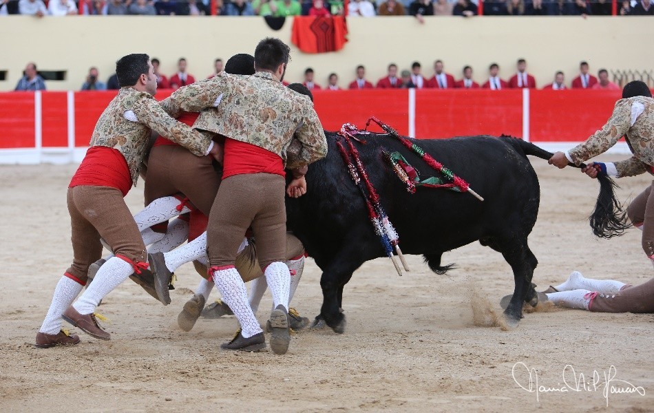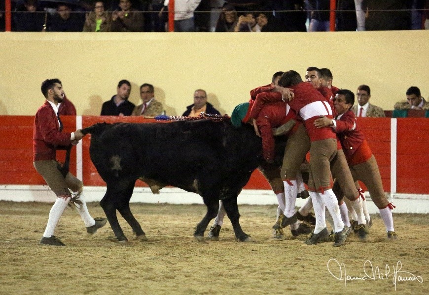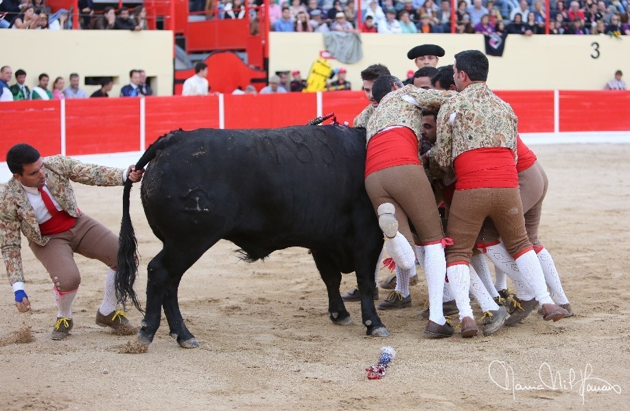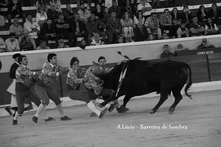 Os Forcados do Aposento da Moita cotaram-se com exibição de luxo. José Maria Bettencourt abriu praça com uma excelente pega de caras ao primeiro intento, seguido por Nuno Inácio com outra boa cara ao primeiro intento na sua pega de despedida, e Leonardo Matias na pega da noite, brutal pelos derrotes suportados e pelo grande par de braços para se fechar à barbela à segunda tentativa, dando duas voltas à arena com Ventura.