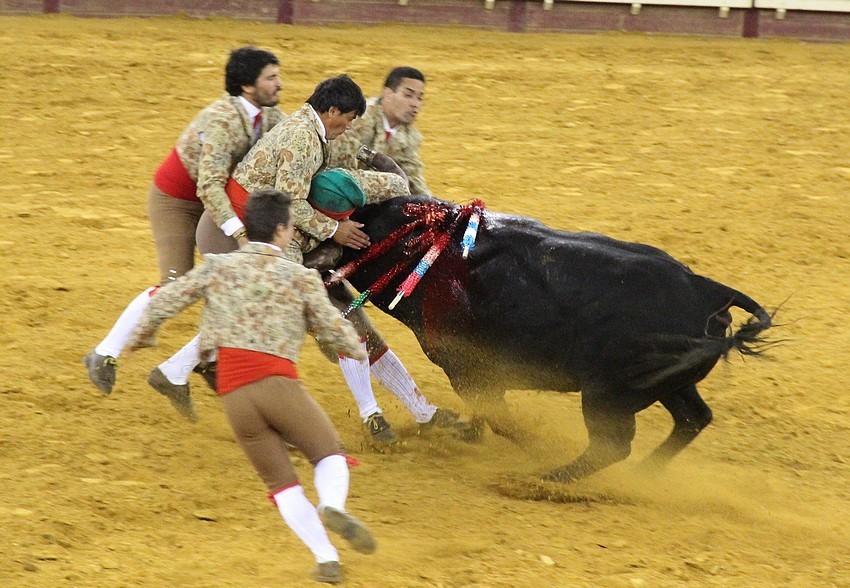 Três Grupos de Forcados para pegarem os seis “Teixeiras”. Os Amadores do Ribatejo abriram praça com Rafael Costa a fechar-se com muita determinação á primeira e depois com André Martins à segunda tentativa. Pelos Amadores da Chamusca, Igor Rabita efectuou rija pega de caras à segunda depois de dois violentos derrotes o terem desfeiteado na primeira e Luís Isidro muito bem à primeira, com raça a aguentar os derrotes. E, finalmente, os Amadores do Aposento da Chamusca com Francisco Andrade numa pega rija à 2ª tentativa e a encerrar praça João Salgueiro também à segunda.