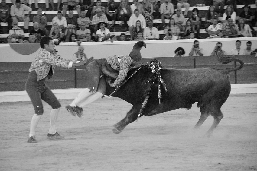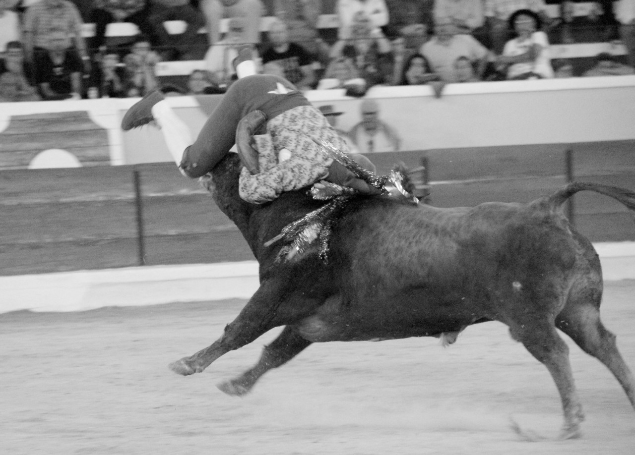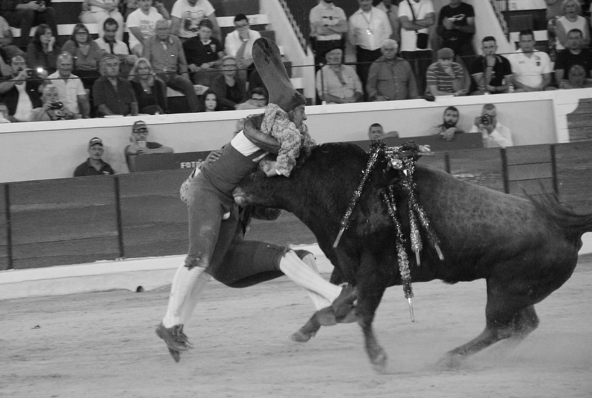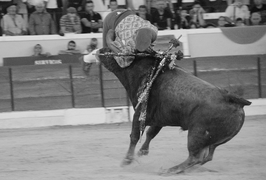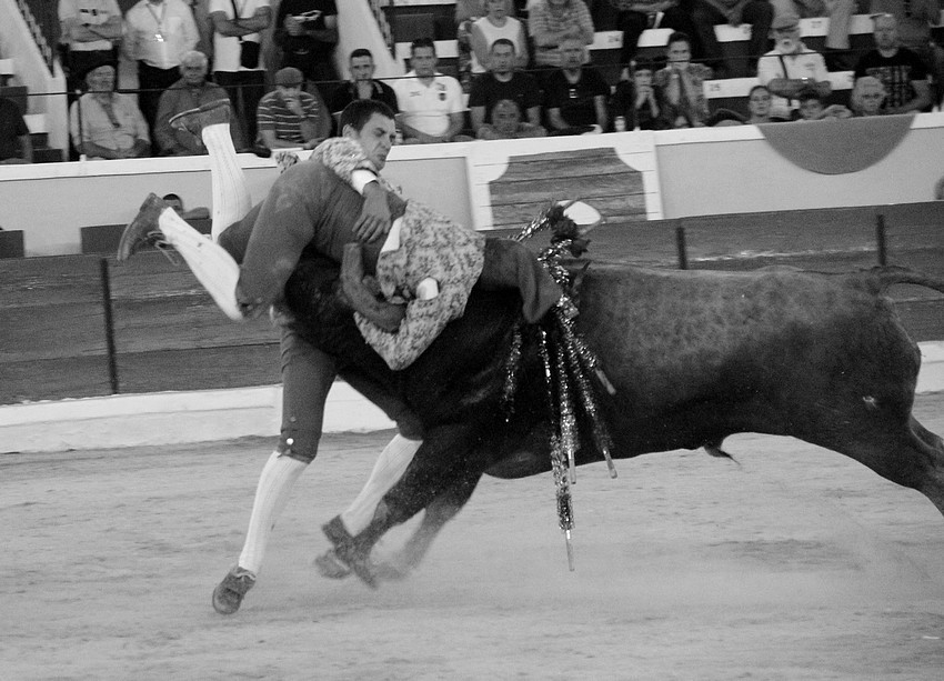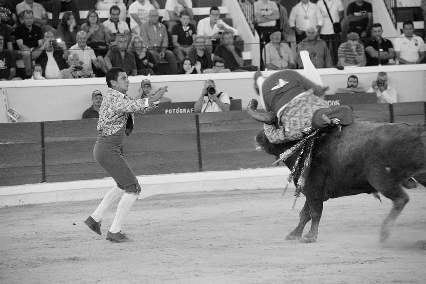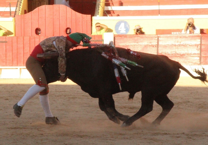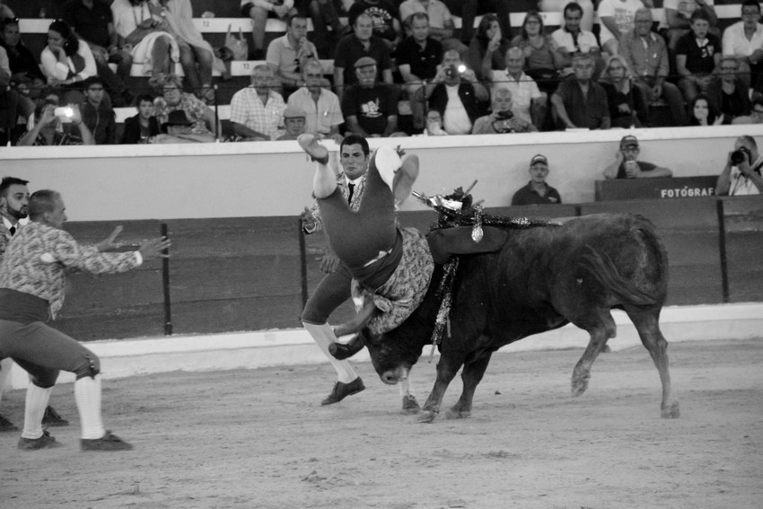 Comecemos pelos Forcados do Aposento da Moita que, tradicionalmente se encerram a solo na corrida de 5ª feira e que, este ano apostou em pegar os seis “Teixeiras”. Os toiros saíram com pata para os forcados, foram duros nas investidas mas, e há sempre um mas, os forcados da cara nem sempre souberam entender os momentos ideais para as reuniões e os ajudas nem sempre cumpriram a sua função. A verdade é que, com tantas dificuldades, conseguiram consumar as sete pegas de caras, seis delas a sesgo e ao fim de muitas tentativas e uma à segunda (a do novilho), por intermédio de José Henriques (à 4ª na sua despedida das arenas), João Vasco Ventura (à 3ª), Martim Afonso à primeira (a dobrar Salvador Pinto Coelho que se lesionou ao fim de 4 tentativas), João Gomes (à 2ª), Ruben Serafim (à 4ª), José Maria Bettencourt (à 5ª) e Luís Fera (à 1ª a emendar Miguel Fernandes, lesionado na 2ª).