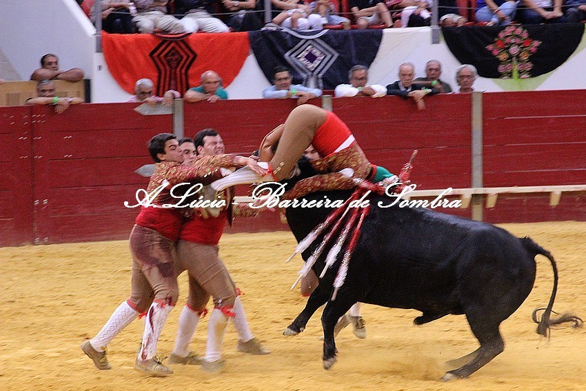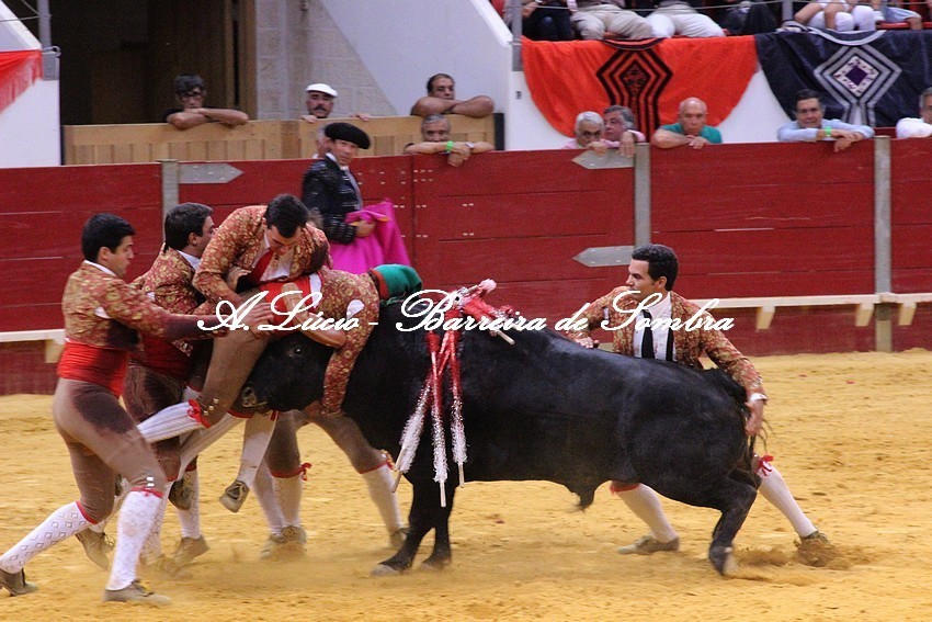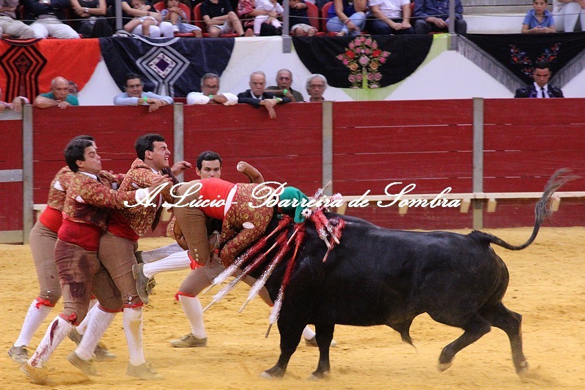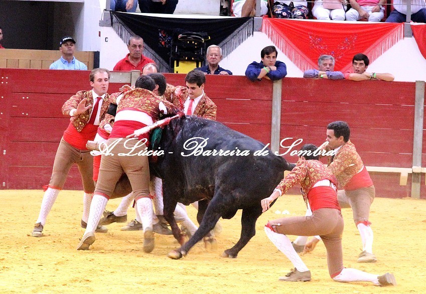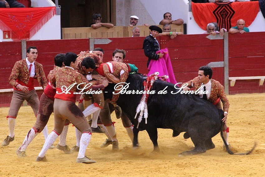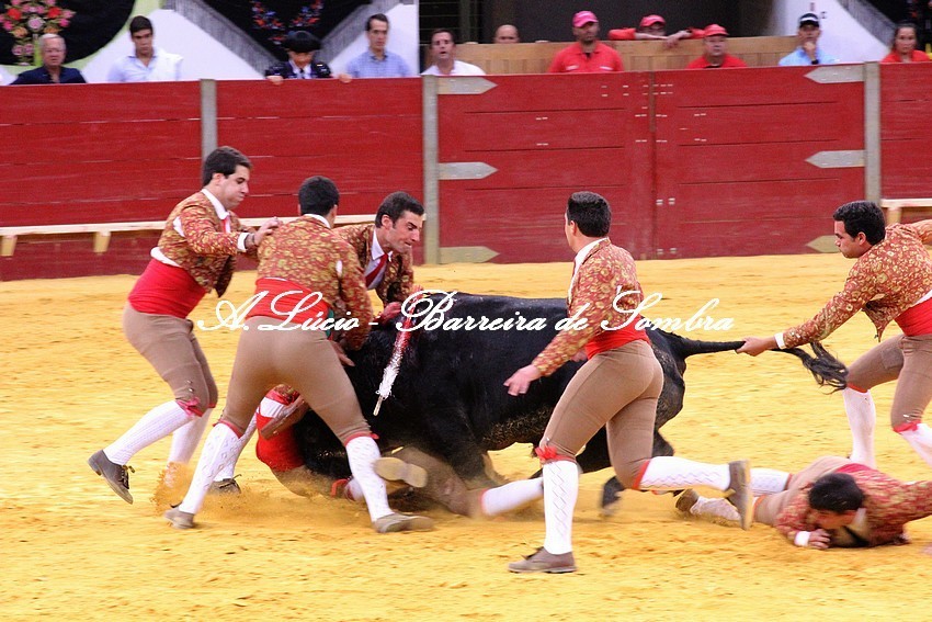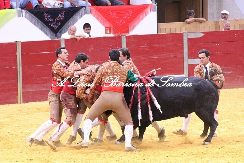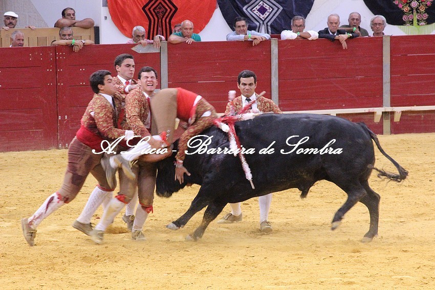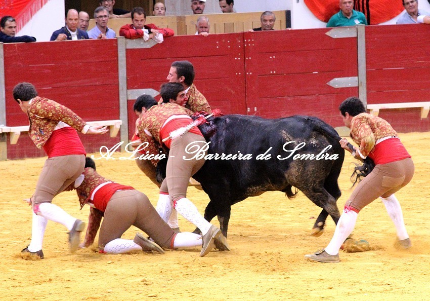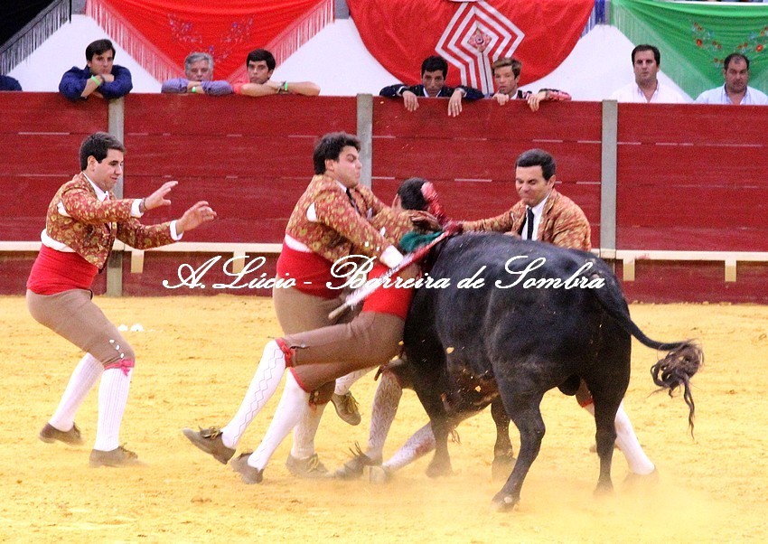 Tarde dura para os forcados. Pelos Amadores da Tertúlia Tauromáquica do Montijo abriu praça Luís Carrilho que á segunda tentativa consumou uma dura pega; para o quarto da tarde foi o cabo Márcio Chapa, enorme na 1ª tentativa em que foi muito mal ajudado, falhou a reunião na segunda e esteve de novo muito bem na dura 3ª tentativa em que consumou bem. Os Amadores do Montijo tiveram João Paulo Damásio a consumar bem à primeira frente ao segundo da tarde e o estóico, enorme no valor apesar da pequena estatura José Pedro Suissas a aguentar “porrada da grosssa” e a consumar à 5ª tentativa numa pega onde o ajuda António Pereira saiu fortemente lesionado com um traumatismo craniano que o obrigou a internamento no Hospital Garcia de Orta em Almada. Finalmente, pelos Amadores de Tomar foram caras Vasco Freire numa vistosa pega à 1ª e Hélder Parker também à 1ª numa grande pega e que seria declarada, justamente, a melhor da corrida.