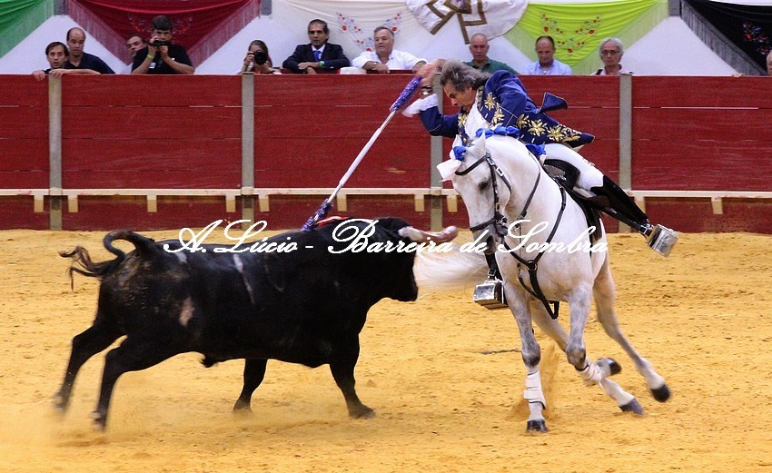 Cartel de máxima expectativa. A possibilidade de ver actuar, de novo, Paulo Caetano a par de Joaquim Bastinhas. Lotação esgotada com antecedência…. Uma grande noite de toureio. Duas lições de cátedra, quais lições de sapiência de um professor catedrático á beira da jubilação. Momentos inolvidáveis que estiveram a cargo dos dois veteranos cavaleiros. A classe e a souplesse da equitação de Paulo Caetano, aliadas a um entendimento perfeito das boas condições de lide do seu toiro, com seu ferro, da escolha dos terrenos mais idóneos para o colocar e a abordagem perfeita das sortes com cravagem dos ferros num estilo clássico de entradas ao pitón contrário e de muito temple. Não foram, por isso, estranhas as fortes ovações que recebeu durante a lide, muito intensa e muito bem medida no tempo, e na volta que deu com o forcado.