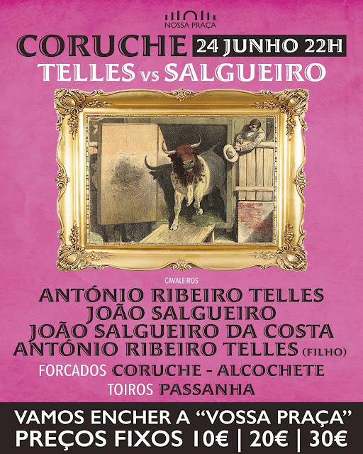 Praça de Ilha Terceira (Angra do Heroísmo - Ilha Terceira, Açores), sábado 18 de Junho, 18H30. Corrida de toiros à portuguesa da Feira Taurina de São João.