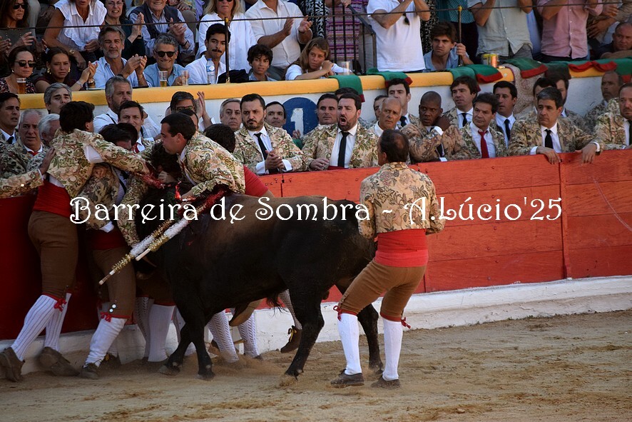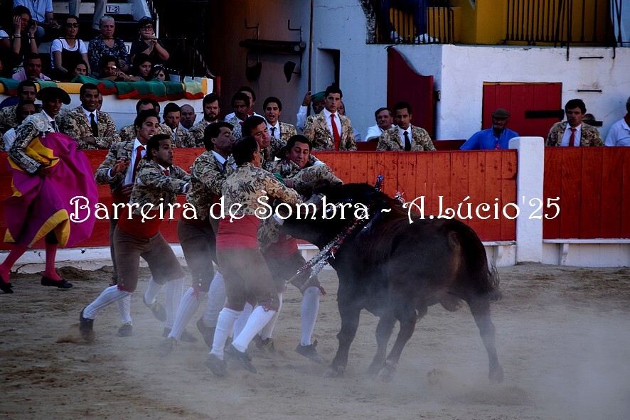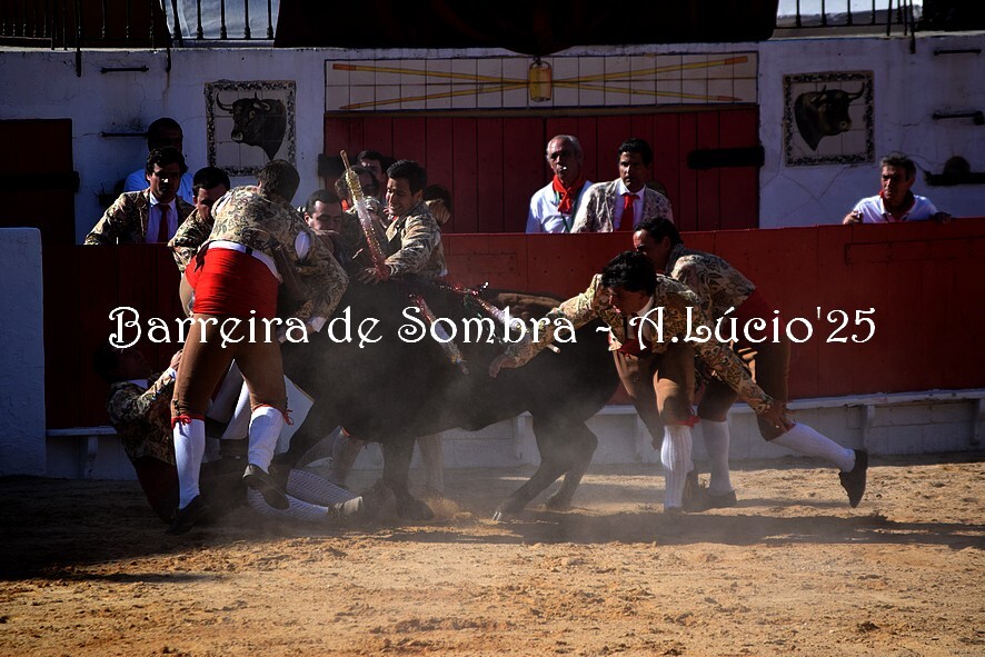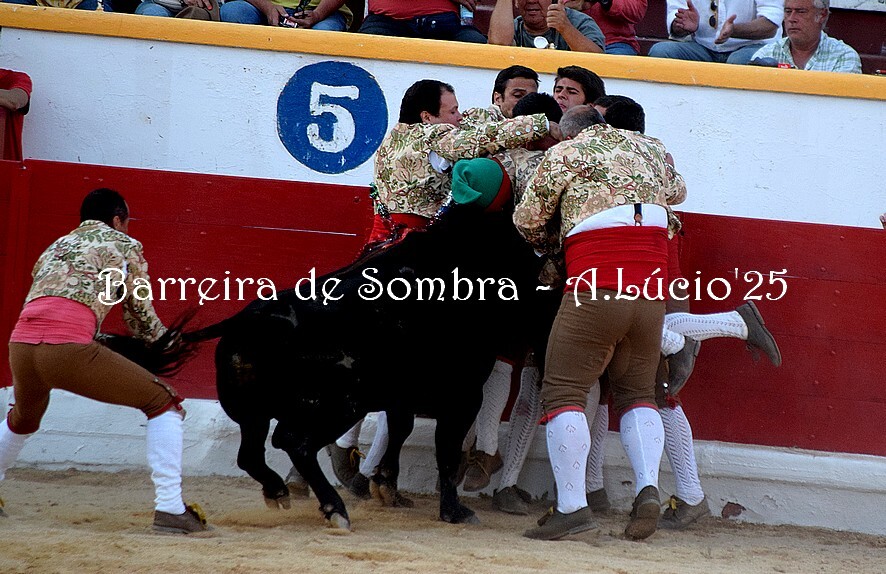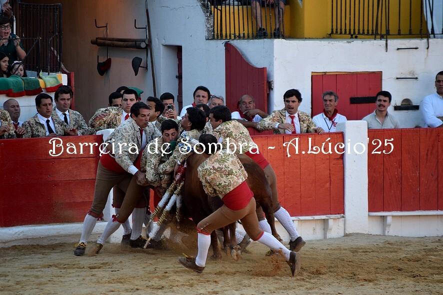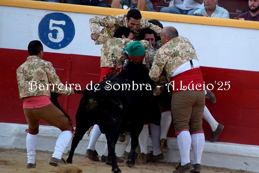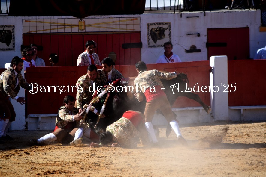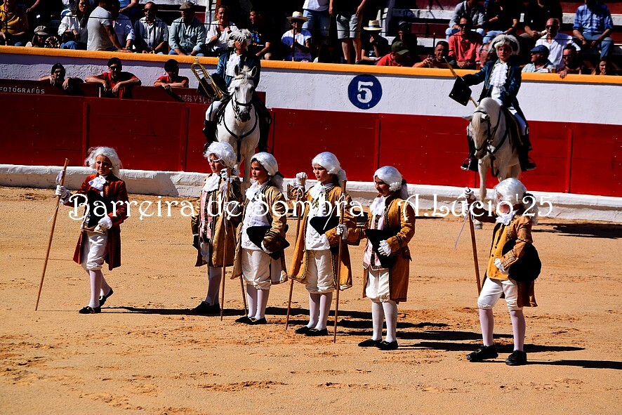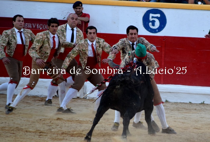Foi uma tarde de muito calor e onde se anunciava também um cortejo à antiga portuguesa para a festa dos 50 anos do Grupo de Forcados Amadores do Aposento da Moita e a mudança do seu cabo. Foi bonito de ser ver antigos cabos, antigos e actuais forcados irmanados para uma tarde de êxito rotundo e onde a história e brilhantismo do forcado português saíram altamente honrados e dignificados. O público, o juiz maior, soube premiar com fortes ovações não apenas as pegas mas o desempenho em conjunto de todos os forcados.
