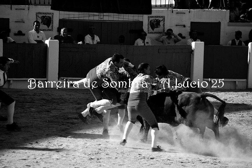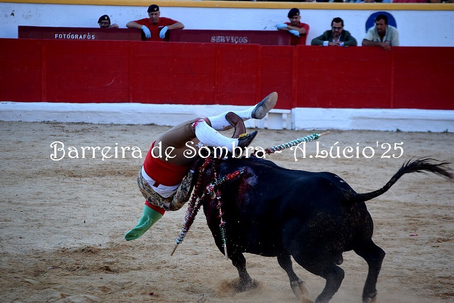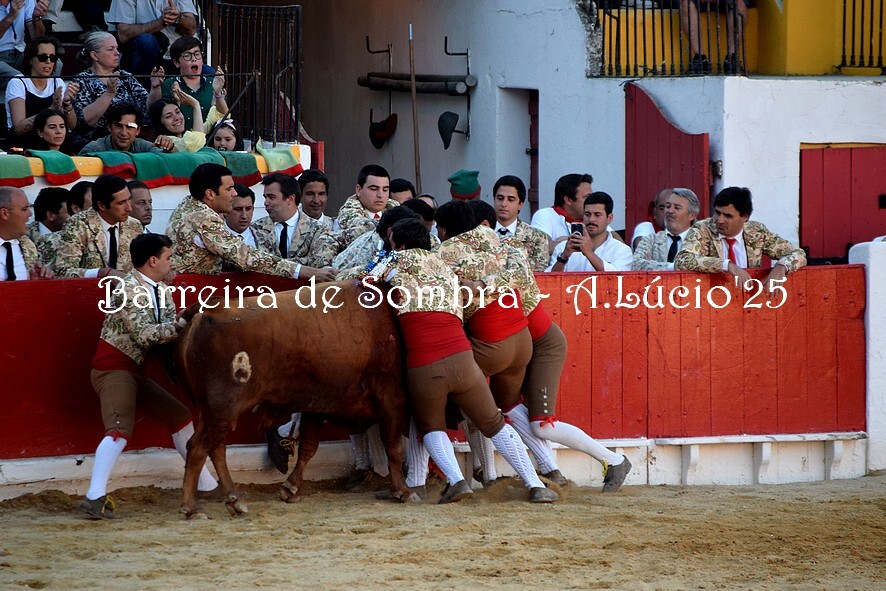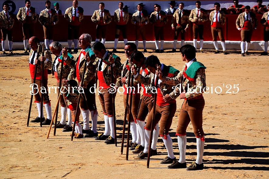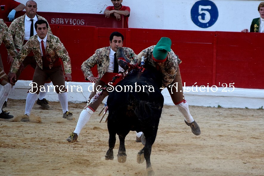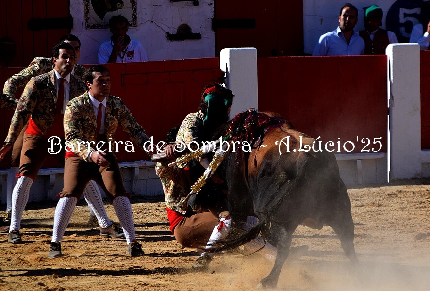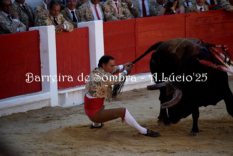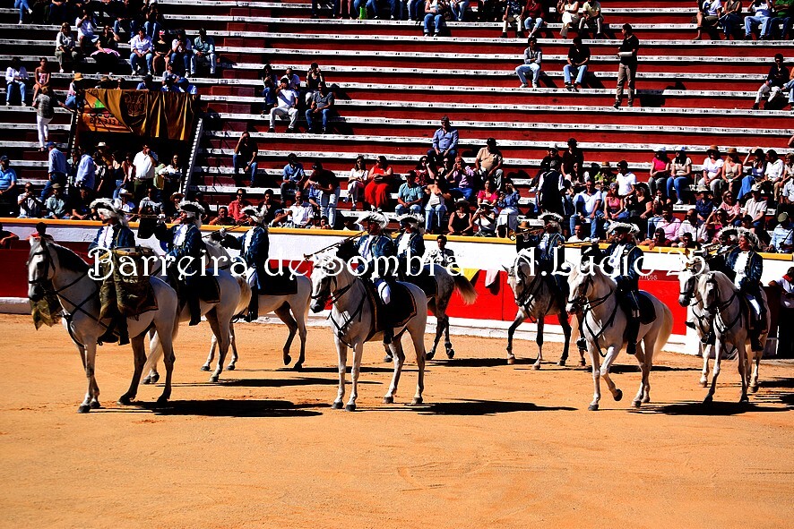 Foi uma tarde de muito calor e onde se anunciava também um cortejo à antiga portuguesa para a festa dos 50 anos do Grupo de Forcados Amadores do Aposento da Moita e a mudança do seu cabo. Foi bonito de ser ver antigos cabos, antigos e actuais forcados irmanados para uma tarde de êxito rotundo e onde a história e brilhantismo do forcado português saíram altamente honrados e dignificados. O público, o juiz maior, soube premiar com fortes ovações não apenas as pegas mas o desempenho em conjunto de todos os forcados.