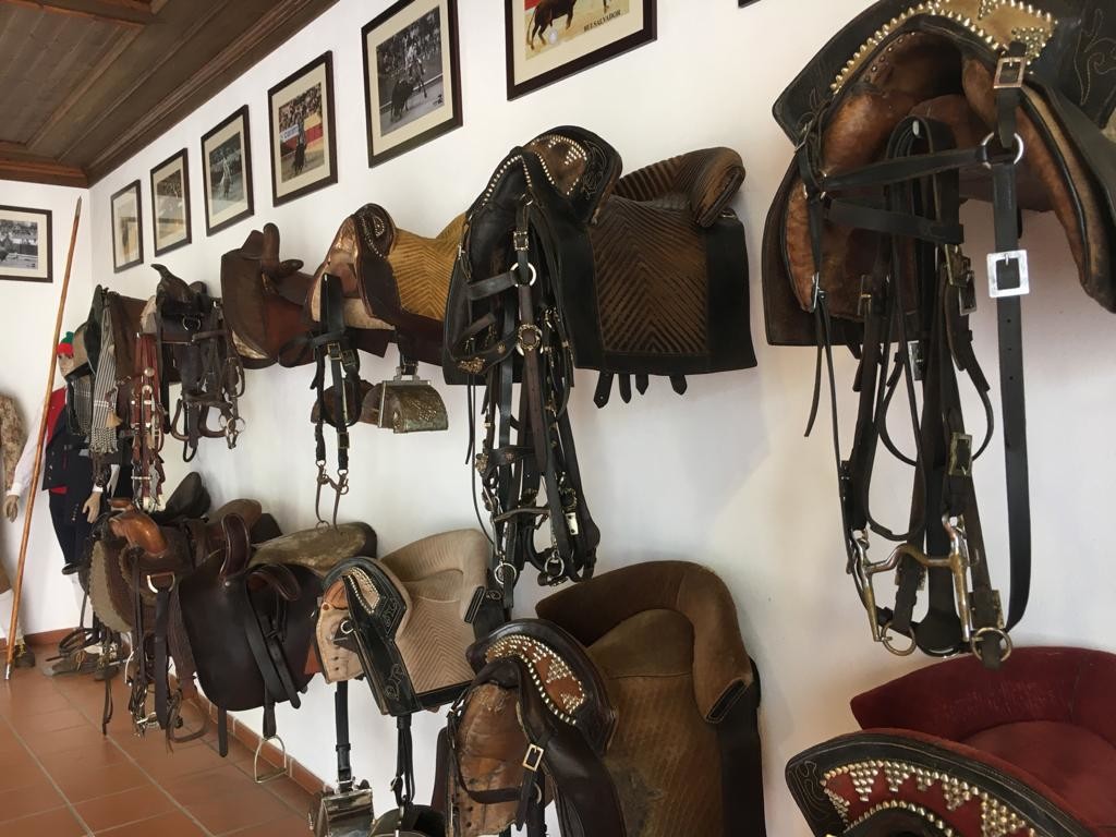 Franqueadas as portas todos seguem o anfitrião, que com gentileza e simpatia, conduz a visita às instalações e recantos da Quinta, onde entre tantos motivos tauromáquicos, também existe espaço para uma colecção de galinhas de diversos matizes e países, charretes várias, alfaias agrícolas de imemoriais tempos, gloriosos carros antigos e... os graciosos mais de trinta cavalos que por ali, em espaçosas boxes vivem. Cavalos, esse animal fascinante, alguns, companheiros de muitas tardes de glórias do hospedeiro, verdadeira alma dos ‘ferros impossíveis’ que caracterizam e marcam a carreira do artista na arte de lidar toiros, Rui Salvador.